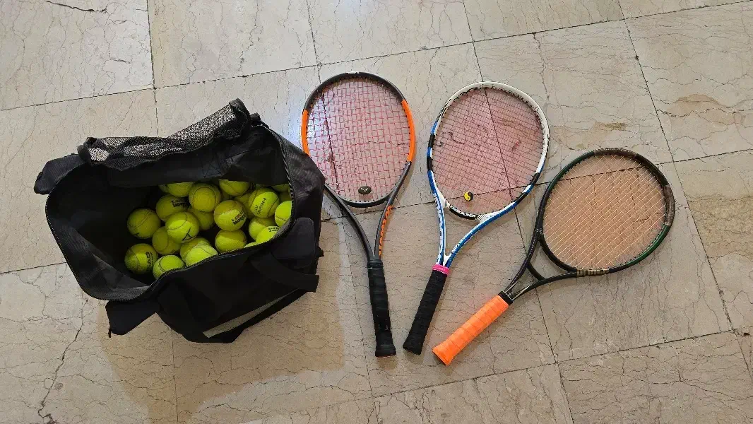 سه عدد راکت تنیس اورجینال (ویلسون برن و بابولات و پرینس) به همراه ۳۰ عدد توپ تمرینی و ساک تنیس و ساک توپ لطفا قبل از خرید با فروشنده هماهنگ شوید.